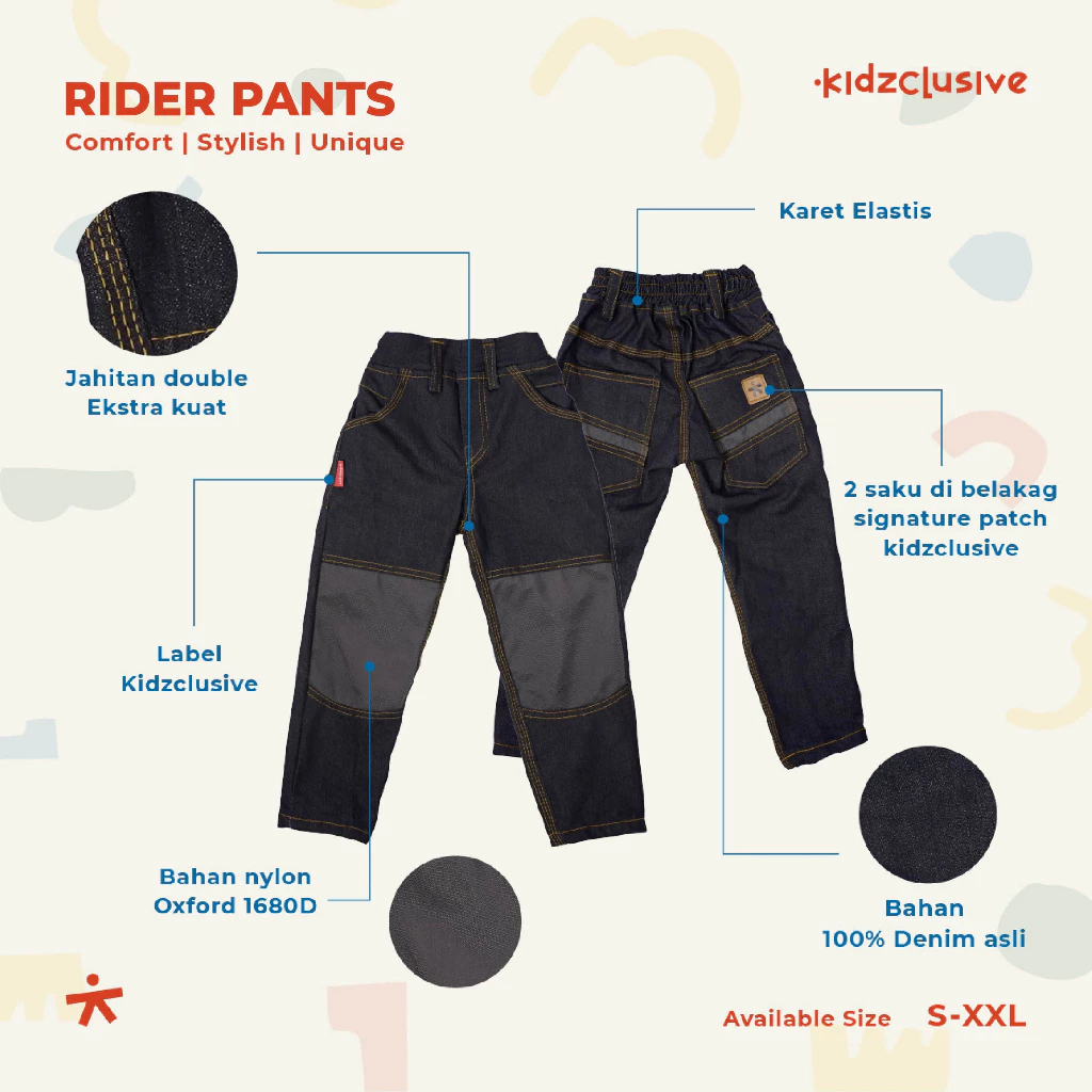 β¨ Rider Pants keren bgt sih ini warnanyaπ 100% denim ya mommies. Bukan denim2an yang biasa dipakai buat kemeja ya, Pokoknya ini Premium deh, Bahannya denim tebal tapi tidak kaku, cocok untuk melengkapi koleksi pants si kecil yang ingin bergaya fashion street dan OOTD Casual, bisa dipadukan dengan t-shirt/kemeja flanel contohnya. So comfy! Tersedia untuk anak usia 9 bulan s/d 9 tahun (tergantung berat badan). Untuk memastikan size yang pas untuk si kecil, ukur dulu yuk!