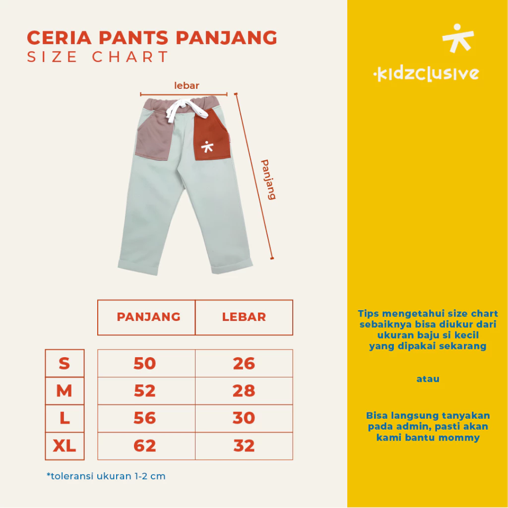 โœจ Toleransi 1 s/d 2 cm setiap ukurannya ya Moms. Jika mommy ragu dengan ukuran, kami sarankan momy memilih 1 size lebih besar ya.