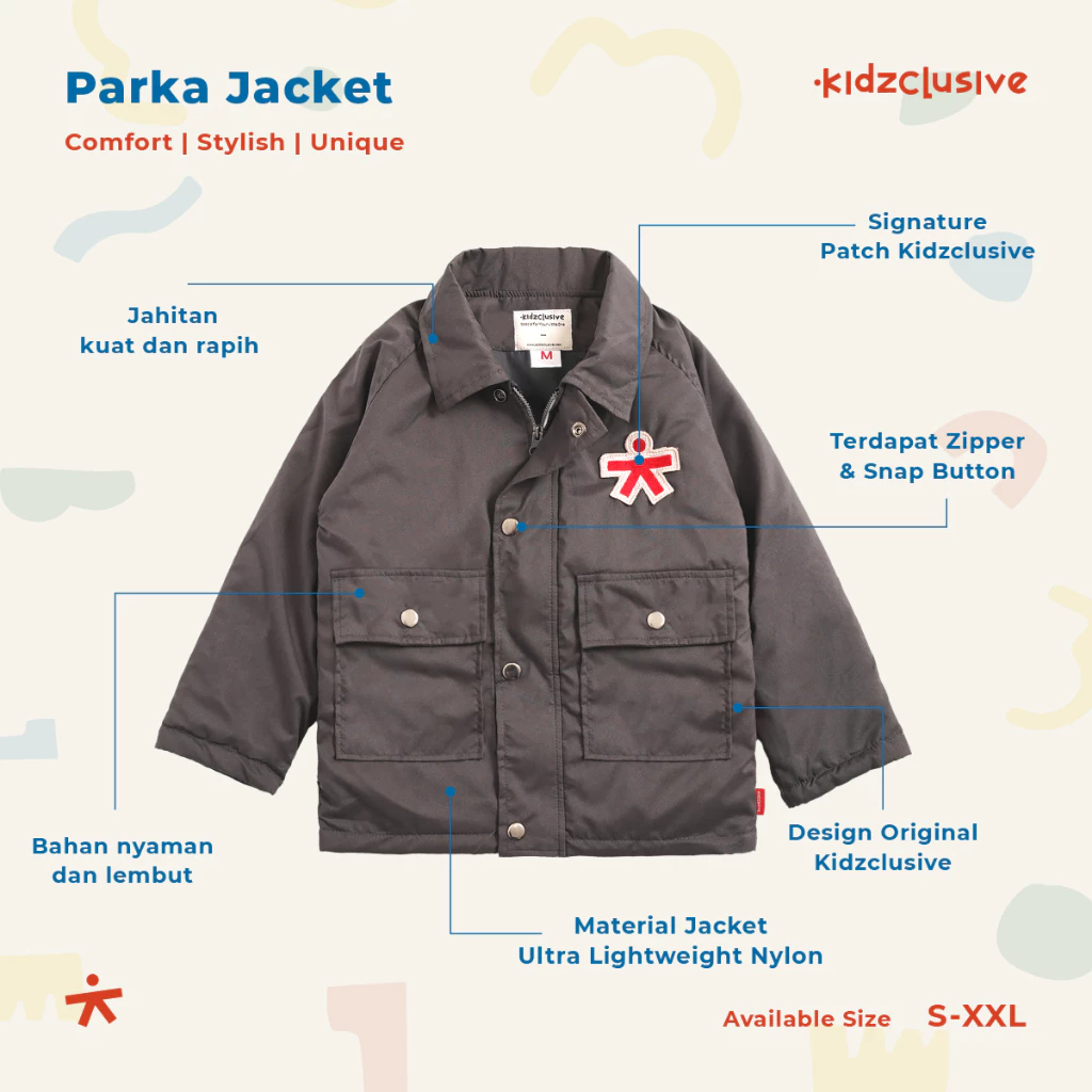 ✨ Jaket Parka Kidzclusive terbaru dari Kidzclusive yang kekinian bikin ootd jadi makin stylish deh! Jaket serba guna ini gak cuma bikin penampilan makin kece tapi juga bisa melindungi Si Kecil apalagi sekarang musim hujan dan bisa dipakai untuk berlibur, cocok banget kalau dipake si kecil jalan-jalan, berkendaraan, atau di cuaca dingin. Karena jaketnya tebal, mampu menahan hujan ringan, angin atau windbreaker, hangat dan yang pasti nyaman.