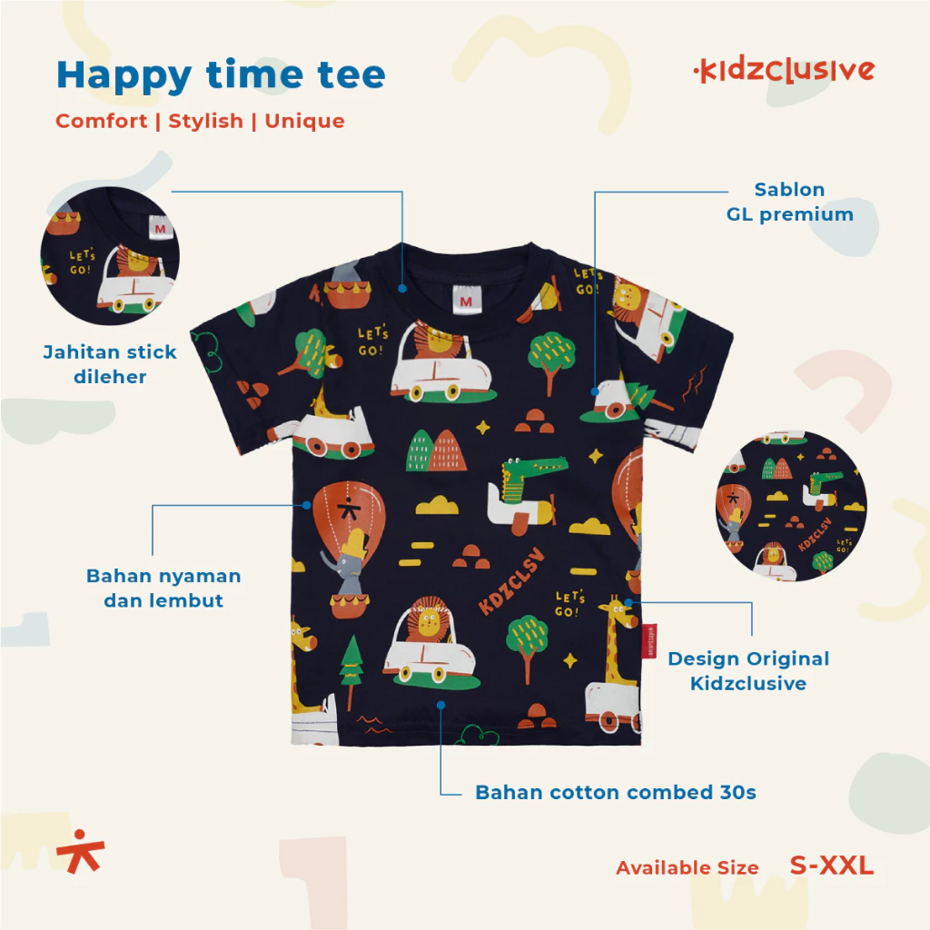β¨ Salah satu koleksi Best Seller Kidzclusive dengan motif beragam binatang yang sedang berpesta. Cocok dipakai si kecil untuk beraktivas sehari-hari atau kasual.