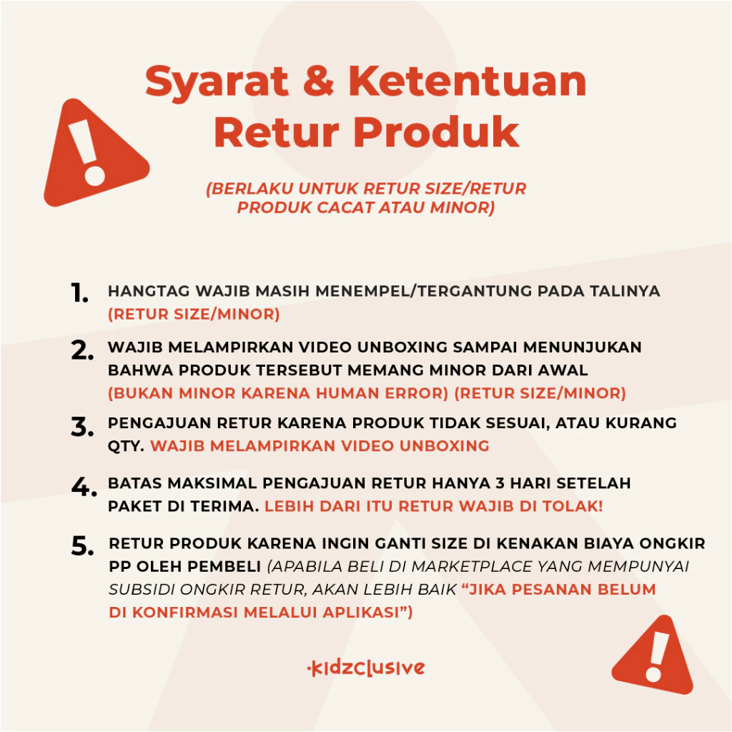 ✨ Toleransi 1 s/d 2 cm setiap ukurannya ya Moms. Jika mommy ragu dengan ukuran, kami sarankan momy memilih 1 size lebih besar ya