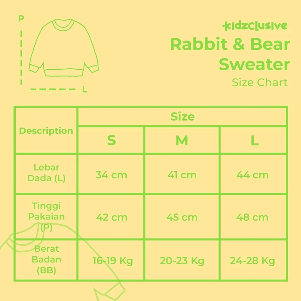 ✨ Sweater Sunny Bear Yellow ini super imut banget! Tersedia untuk anak usia 1 s/d 9 tahun (tergantung berat badan). Untuk memastikan size yang pas untuk si kecil, ukur dulu yuk! Bisa chat admin untuk bantuan sizenya ya moms!